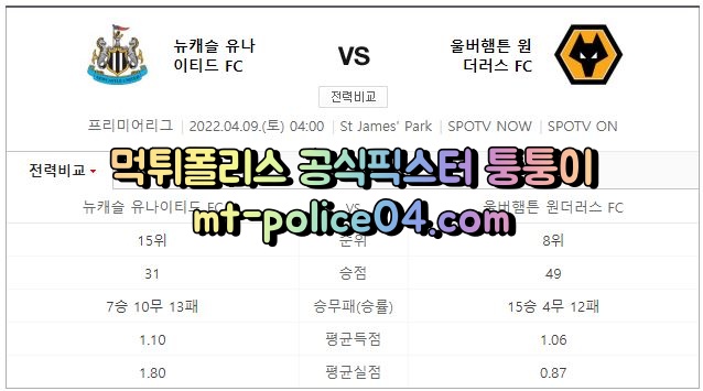 안녕하세요 , 먹폴 픽스터 퉁퉁이 입니다. 4월9일 뉴캐슬 울버햄튼 해외축구분석 입니다. 직장인 들이나 일반인 들은 한경기 분석하는데에 있어 부상자 , 정보등 많은 것을 수집하고 베팅하기엔 시간이 많이걸립니다. 먹튀폴리스 스포츠분석글 은 여러분의 편의를위해 상당시간을 투자하여 무료로 제공해드리고 있습니다. 스포츠 가족방 도 있으니 함께하면 어떠실까요